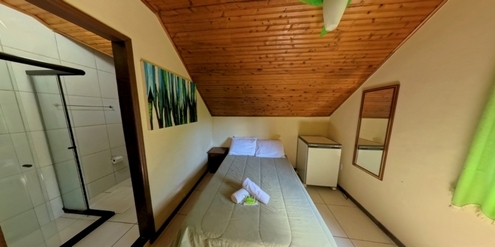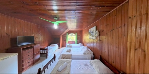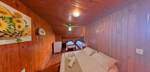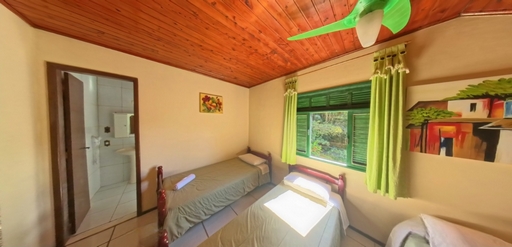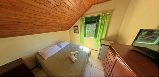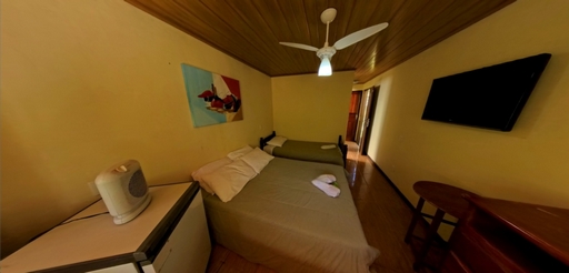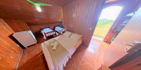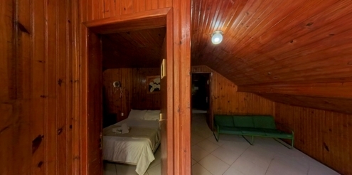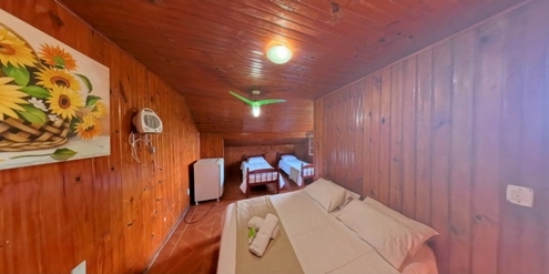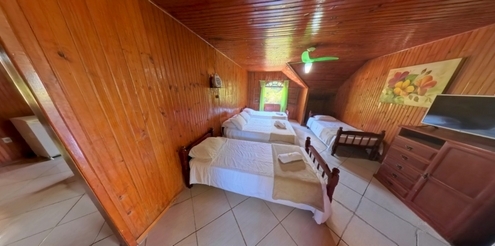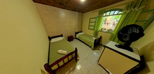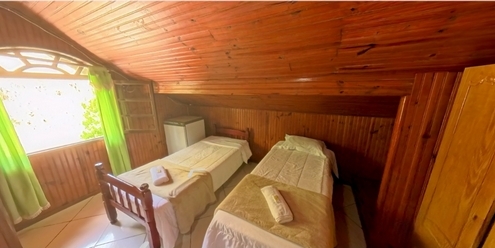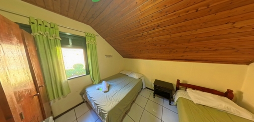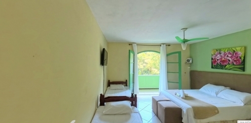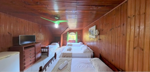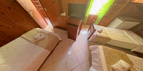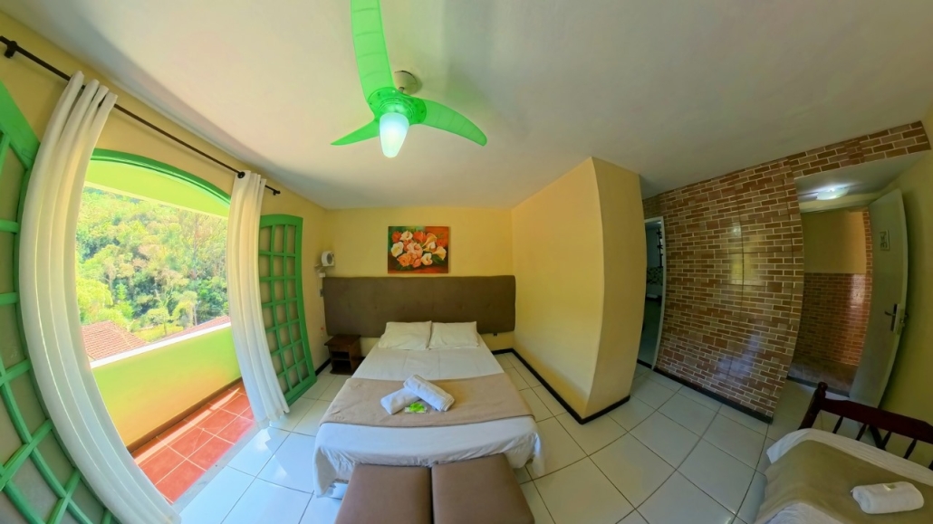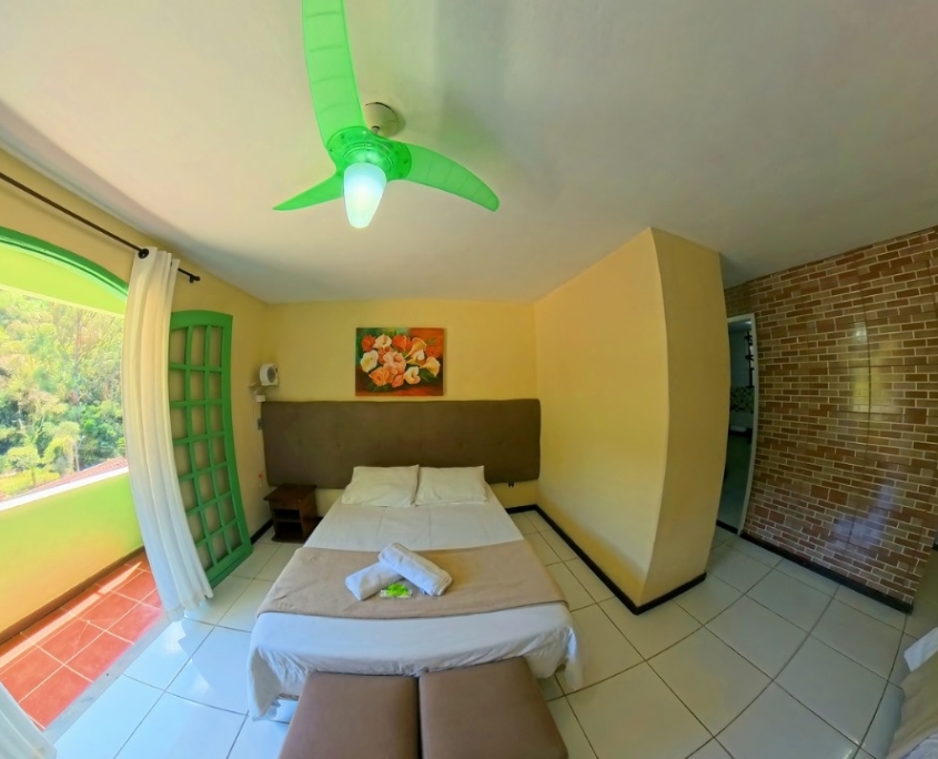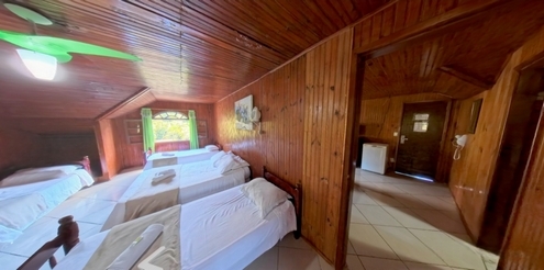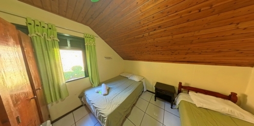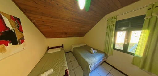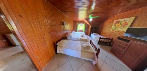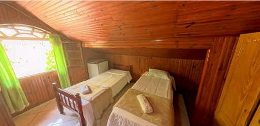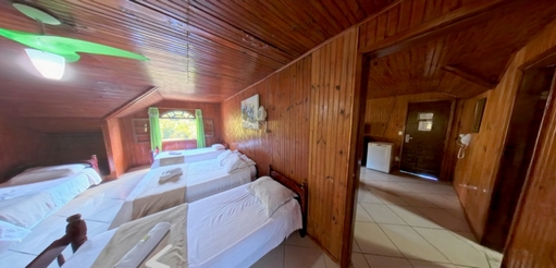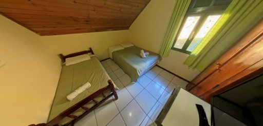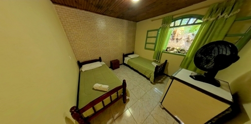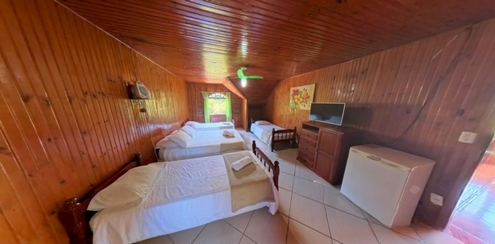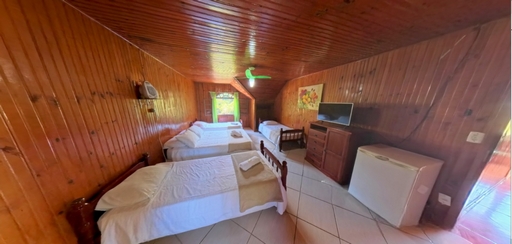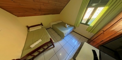 sendo um com 1 cama de casal e no outro 2 camas de solteiro, fica na parte baixa do hotel,