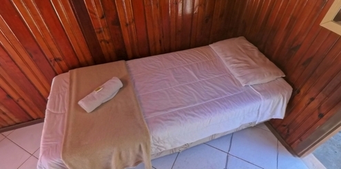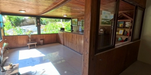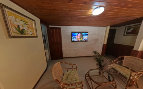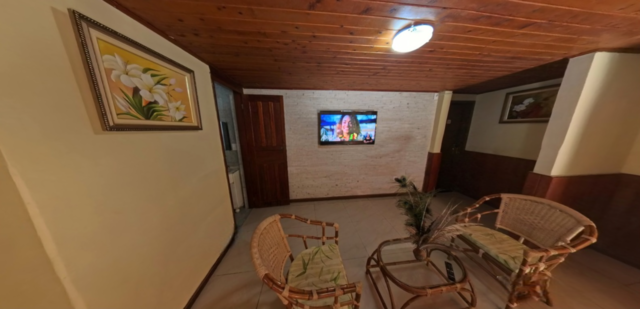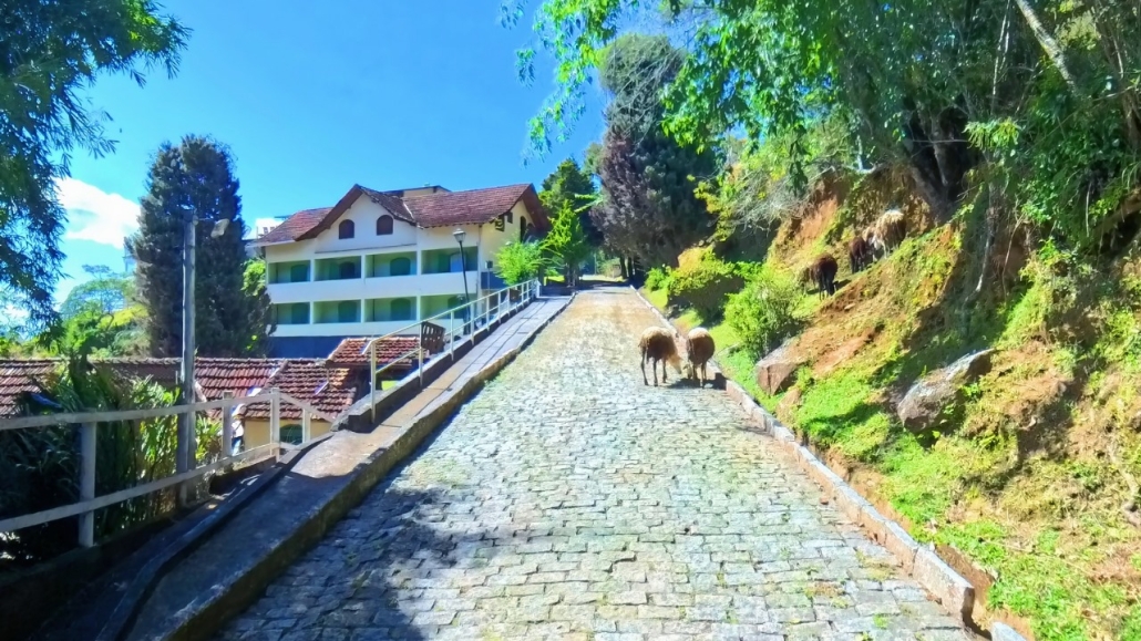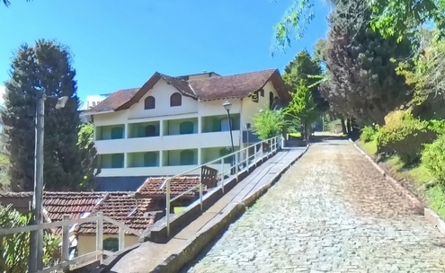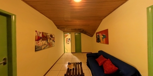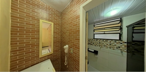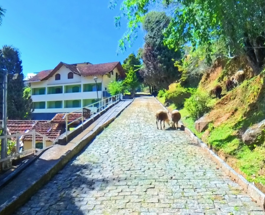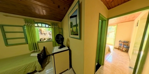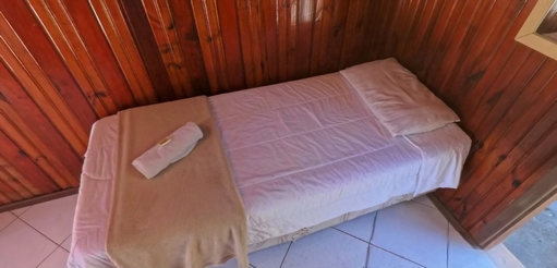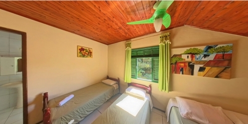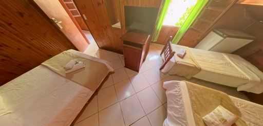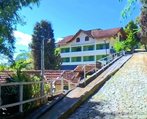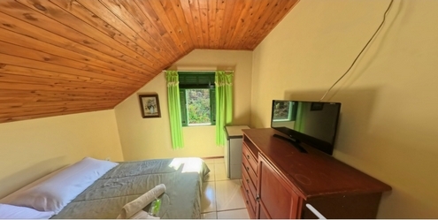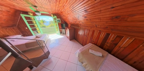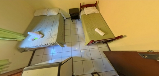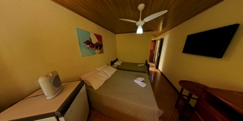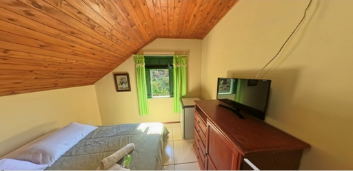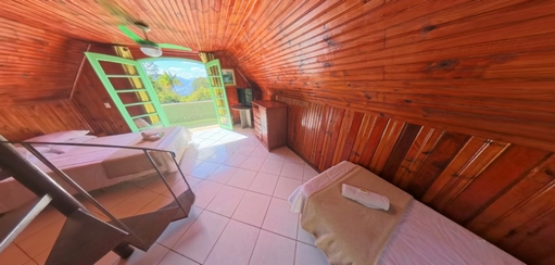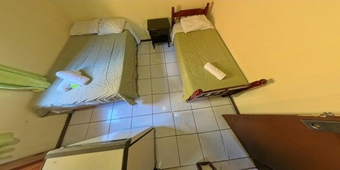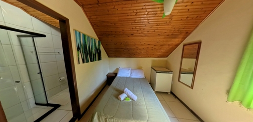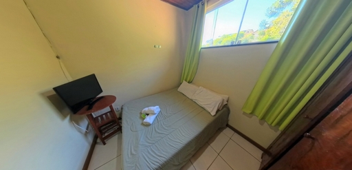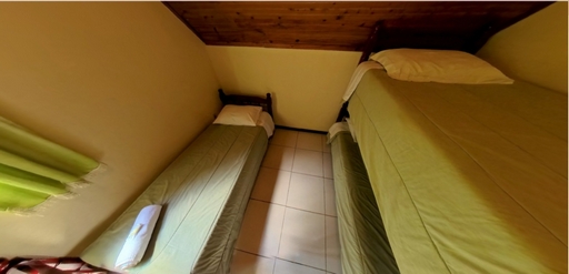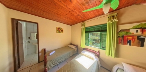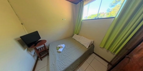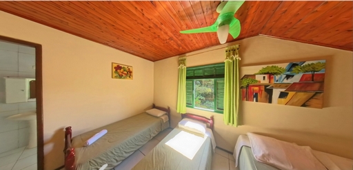 sendo um com 1 cama de casal e no outro 2 camas de solteiro, fica na parte baixa do hotel,